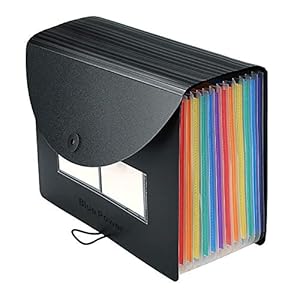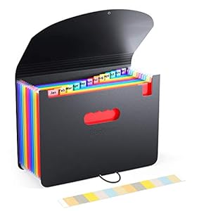 12 Pack BluePower Accordion Expanding File Folder, Letter Size, 6″ Expansion, Receipt/Document/Taxes/Files Organizer, Waterproof Plastic Accordian Filing Box with Label Pockets (Black)