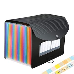26 Pockets Accordian File Folder Organizer, Expanding Filing Box A4 Letter Size Expandable File Folders, Plastic Accordion Document Paper Coupon Bill Receipt Organizer with 3 A-Z Alphabet Colored Tabs