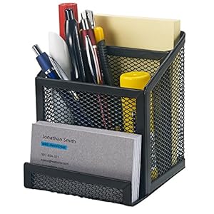 Bonsaii Mesh Desk Organizers with Pen Holder, Office Supplies Desk Accessories with 8 Compartments for Home and School, Black (W6002)