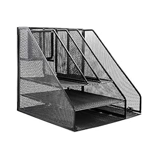 Bonsaii Home office Metal Mesh Desktop Organizer 3 Divided Compartments,Black(W6023)