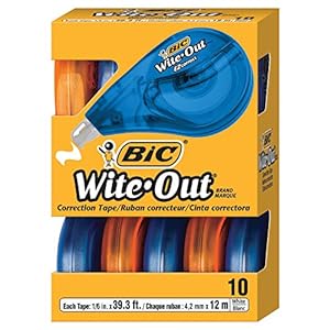 BIC Wite-Out Brand EZ Correct Correction Tape, White, 10-Count, Translucent Dispenser Shows How Much Tape is Remaining