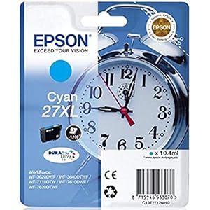 Epson Alarm Clock No.27 X-Large Series High Capacity Ink Cartridge, Cyan, Genuine, Amazon Dash Replenishment Ready