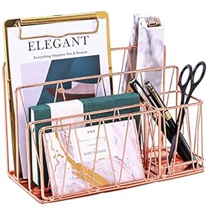 Nugorise 4 in 1 Desk Accessories Organizer, File Holder, Mail Sorter, Pen Holder and Paper Tray, Decorative Wire Home Office Supplies Storage Rack, Rose Gold