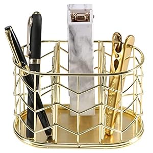 Pen Holder, Nugorise 3 Compartment Metal Pencil Holder, Decorative Desk Storage Organizer Container for Stationery and Desk Accessories, Gold