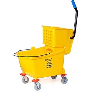 Maybe you will be interested in professional cleaning trolleys with a squeezer that thoroughly removes water and dirt from the mop fibers. The chamber is divided into two parts, made of high quality plastic. Trolleys have self-turning rubber wheels that do not scratch the floor and are very quiet. Additionally, they have pictograms and a sign warning about wet floor.