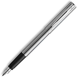 Waterman Graduate Chrome Fountain Pen, Fine Nib, Blue Ink