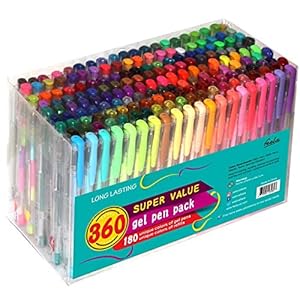 Feela 360 Colors Gel Pens Set 180 Unique Gel Pen Plus 180 Re...