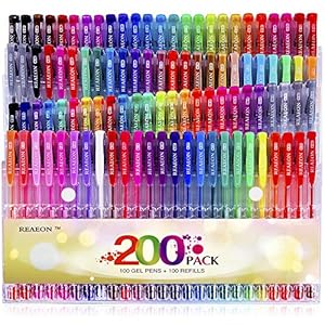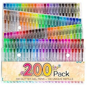 200 Glitter Gel Pen Set, 100 Gel Markers plus 100 Refills Gl...