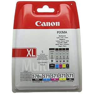 Canon PGI-570+CLI-571 5 original Tintenpatrone Multipack PGBK/BK/C/M/Y für Pixma Inkjet Drucker TS5050-TS5055-TS5053-TS5051-TS6050-TS6052-TS6051-TS8050-TS8053-TS8052-TS8051-TS9055-TS9050-MG5750-MG5751-MG5752-MG5753-MG6850-MG6851-MG6852-MG6853-MG7750-MG7751-MG7752-MG7753
