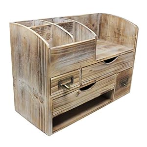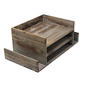 Executive Office Solutions Vintage Rustic Wooden Office Desktop Mail Organizer Rack For Paper, Documents, Notebooks – Distressed Torched Wood – Store Supplies, Desk Accessories, Mail – Barnwood (WO14)
