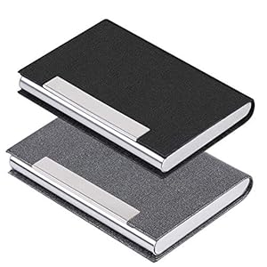 Business Card Holder Business Card Case – JuneLsy 2 Pack Luxury PU Leather and Stainless Steel Card Holder for Men and Women with Magnetic Shut Keep Business Cards Clean (Black/Gray)