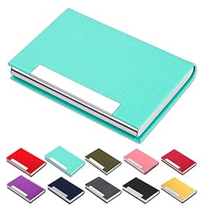 Business Card Holder Case – PU Leather Business Card Case Name Card Holder Slim Metal Pocket Card Holder with Magnetic Shut (Green-7)