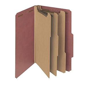 Smead 100% Recycled Pressboard Classification File Folder, 3 Dividers, 3″ Expansion, Legal Size, Red, 10 per Box (19099)