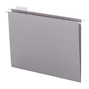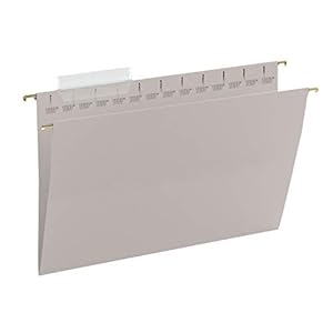 Smead Colored Hanging File Folder with Tab, 1/5-Cut Adjustable Tab, Letter Size, Gray, 25 per Box (64063)