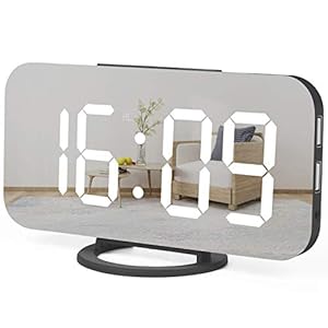 WulaWindy Digital Alarm Clock, Large Mirrored LED Display, with USB Charger, Snooze Function Dim Mode Wall Hanging Beside Desk Clock for Bedroom (Black)