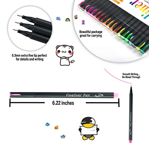 40 Unique Bright Colors:Lineon Fineliner Color Pens Set contains 40 Vibrant colors which are commonly used ,no duplicates .All the colors are vivid and perfect for writing, drawing, journal, planner, calendar, agenda, note taking, manga, coloring, doodling and so on.