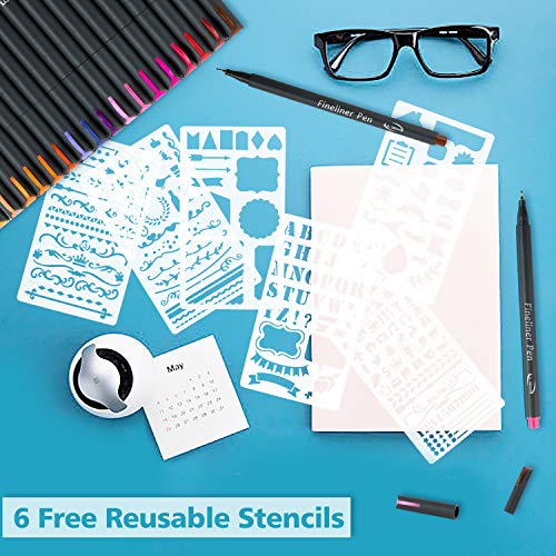 46 Pack Journal Planner Pens, Lineon 40 Colors Fineliner Pens with 6 Different Stencils, Perfect Set for Journal Planner Note Calendar Coloring Office School Supplies Art Projects