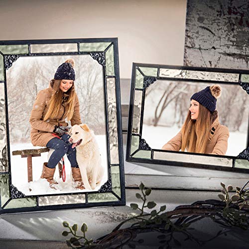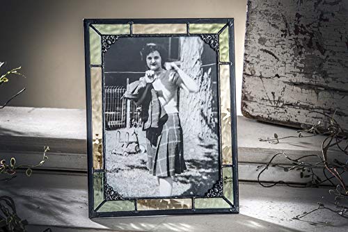 5×7 Picture Frame Green and Yellow Stained Glass Photo Vintage Home Decor Easel Vertical Horizontal Family Baby J Devlin Pic 404-57HV