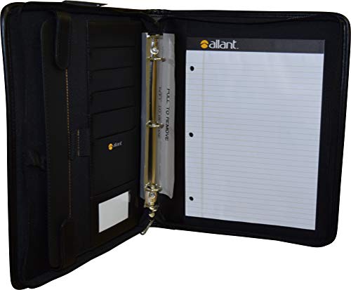 Allant Zip Around Vynil 3 Ring Padfolio with Retractable Handles – Black