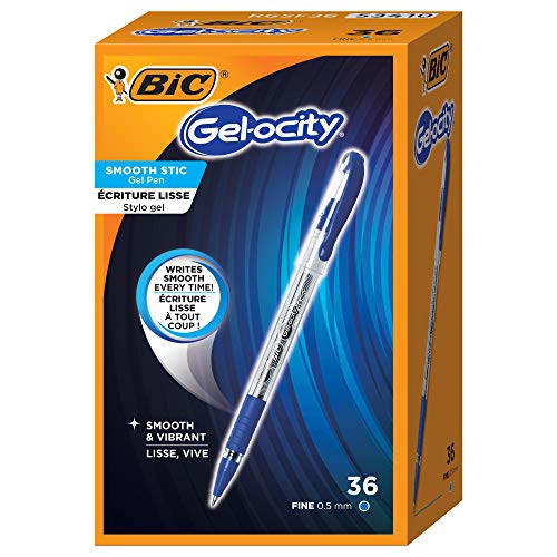 BIC Gel-ocity Smooth Stic Gel Pen, Fine Point (0.5mm) – Box of 36 Blue Gel Stick Pens