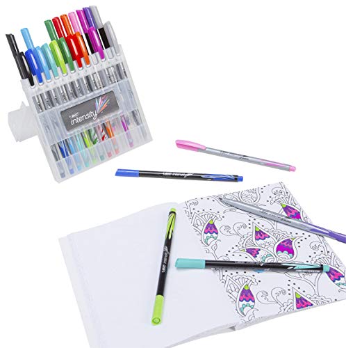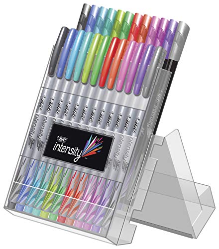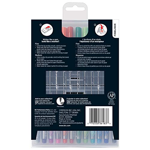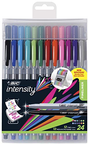 Includes 12 medium tip (1. 0mm) marker pens for bold coverage that stands out on paper and 12 fine tip (0. 4mm) marker pens for crisp, precise writing — perfect for colorful details. These Vibrant and smooth water-based ink pens won’t bleed through paper and will add flair to your note-taking, creative writing, adult coloring, doodling, and journaling. All 24 pens come in a reusable easel case – stand up to display, snap closed for easy storage!
