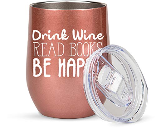 Book Lovers Gifts Women – 12 oz Tumbler/Coffee Mug or Wine – Gift Idea for Book Club, Librarians, Bulk Readers, Literary, Glass, Bookworm, Reading DOUBLE WALL VACUUM INSULATION: The Coworker Tumbler Keeps beverage at the perfect temperature (hot or cold) for a long time. Can be used for anything from wine or juice to coffee or tea. 18/8 STAINLESS STEEL & BPA FREE: Made from 18/8 food grade stainless steel, this tumbler is unbreakable, rust resistant, doesn’t transfer flavor. Comes with a clear BPA-free lid SPILL RESISTANT & PORTABLE WITH LID: Clear, push on lid makes this cute novelty tumbler ideal for everyday use, indoor and outdoor events, parties, camping, tailgating, weekends by the lake or evenings at home 12 OZ capacity is the perfect size to hold your favorite beverage and fit in your hand