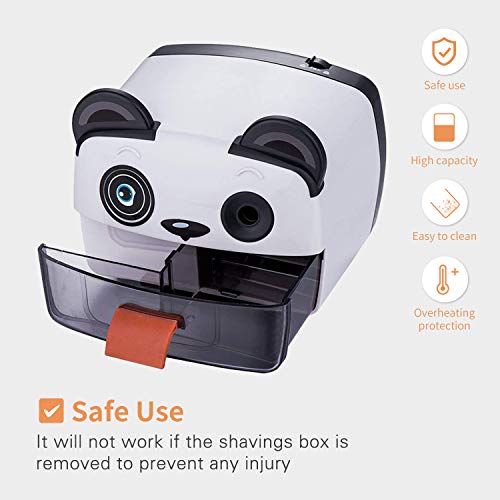 ❤Safety Design —-It has a built in safety device .The smart electric pencil sharpener that focuses on daily use and safety. It will start running automatically when pressing down the pencil, and auto-stop working when finished. If the shaving receptacle is removed, the blade will stop instantly to keep your finger safe.