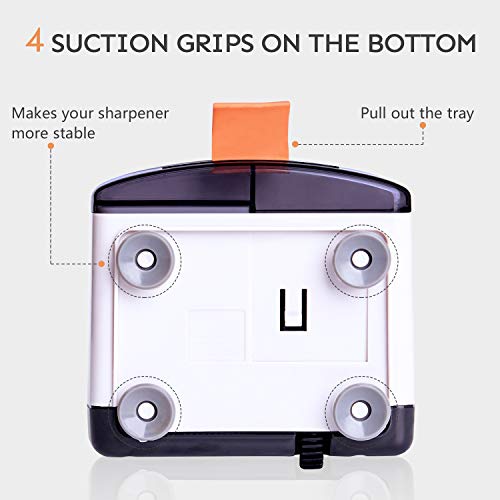 ❤Fast and Stable—-The pencil sharpener will help you sharpen your No. 2 pencils or colored pencils to a perfect point within 3-5 seconds with ease(Please don’t push the pencil too hard when sharpening), which greatly makes your working, studying and drawing more efficient.And the non-skid foot pads make sharpen pencils smoothly and stablely.