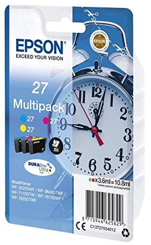 Epson Alarm Clock No.27 Series Standard Ink Cartridge – Multi-Coloured, Pack of 3.