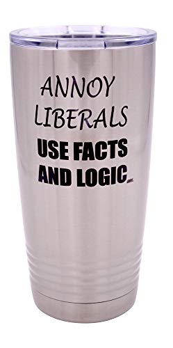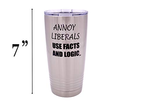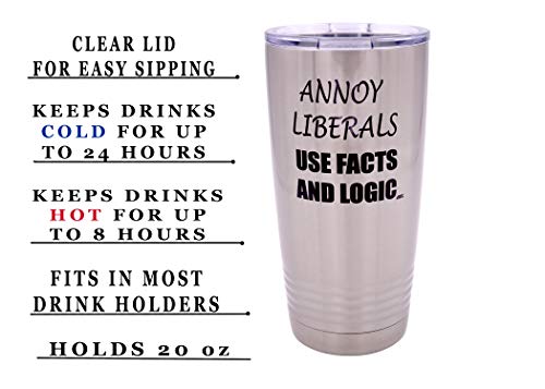 Funny Annoy Liberals Use Facts and Logic 20 Ounce Large Stainless Steel Travel Tumbler Mug Cup Gift For Conservative Or Republican Political Novelty