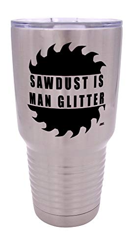 Funny Sawdust IS Man Glitter Travel Tumbler Makes a Perfect Gift to Any Man Carpenter Dad Grandpa Brother or Friend