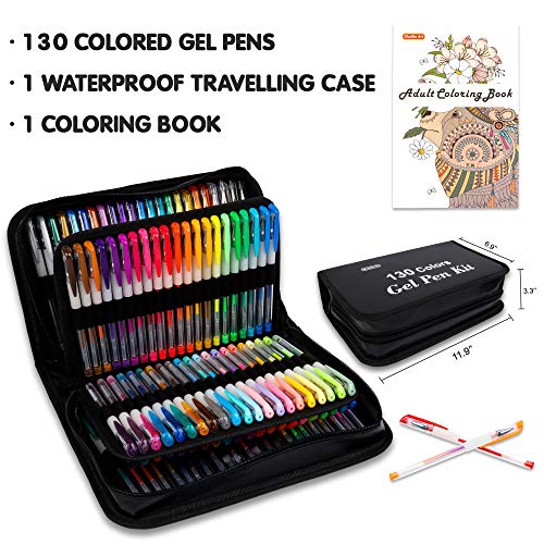 Gel Pens, Shuttle Art 130 Colors Gel Pen with 1 Coloring Book in Travel Case for Adults Coloring Books Drawing Crafts Scrapbooking Journaling