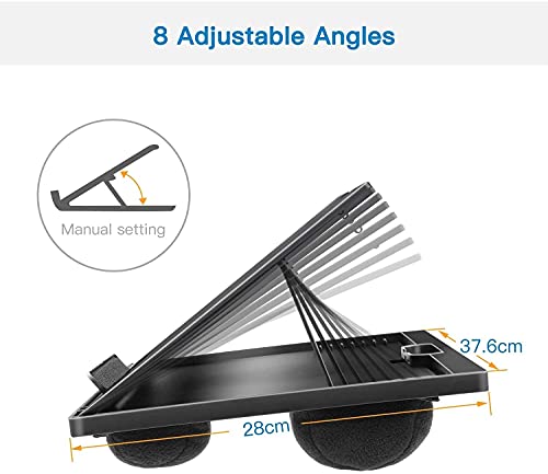 [Adjust to Your Eye Level] The lapdesk is well-designed with 8 adjustable angles, meeting your needs like video conference or best tilt for typing. This lap desk comes with a non-slip strip on the adjustable stand surface, which will catch your laptop tight and protect it from falling when raising a higher level.
