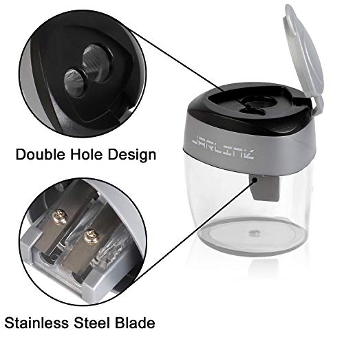 【Double-hole Design】The colored pencil sharpener comes with 2 holes, you can sharpen two different sizes of pens, like #2 pencils, colored pencils, charcoal pencils, etc.