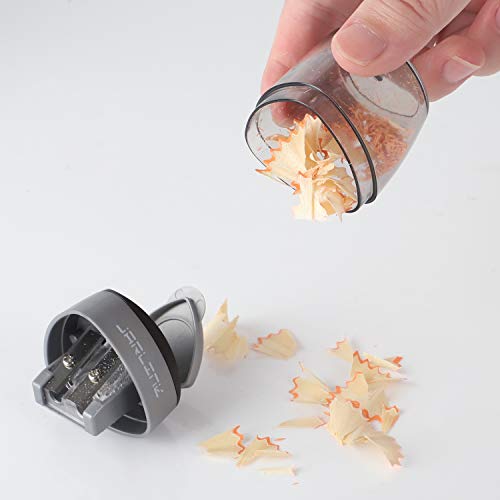【Easy to Clean】Open the cover of the reservoir to pour out the pencil shavings. Its top is well fixed and shavings will not overflow easily.