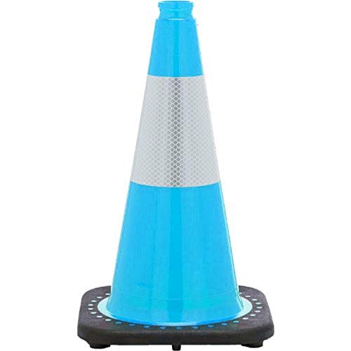 JBC Safety Plastic RS45015C-SB+3M6 Revolution Series 18″ Traffic Cone Wide Body with 6″ Reflective Collar Sky Blue Color. Made with premium grade PVC, which ensures durability, flexibility, and the ability to fully self correct into original shape after being crushed. The patented interlocking base won’t separate from the body even under extreme stress, such as being run over by a car.