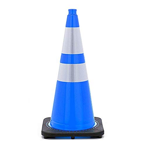 JBC Safety Plastic RS70032C-NB+3M64 Revolution Series 28″ Traffic Cone Wide Body with 6″ and 4″ Reflective Collars Navy Blue Color. Made with premium grade PVC, which ensures durability, flexibility, and the ability to fully self correct into original shape after being crushed. The patented interlocking base won’t separate from the body even under extreme stress, such as being run over by a car.