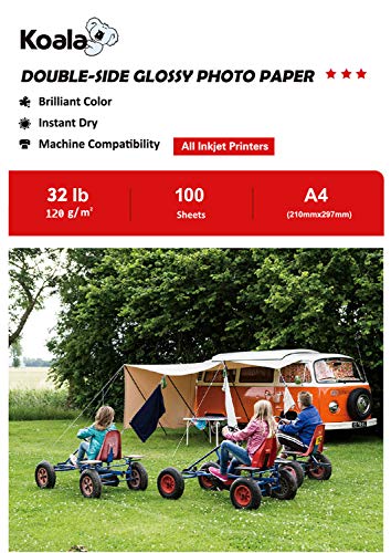 KOALA Double Sided Glossy Inkjet Photo Paper A4, 120gsm, 100 Sheets for Inkjet Printers. Suitable for Printing Photos, Brochures, Covers, Certificates, Booklets, Flyers, Leaflets, Cards, Calendars