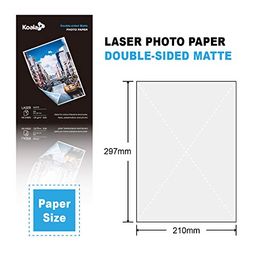 KOALA Double Sided Matte Laser Photo Paper A4, 120gsm, 100 Sheets for Laser Printers. Suitable for Printing Photos, Brochures, Covers, Certificates, Booklets, Flyers, Leaflets, Cards, Calendars