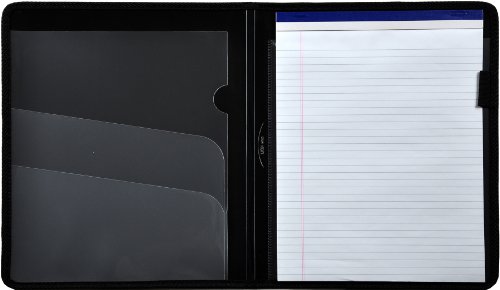 LION stylish black pad folio includes a letter size notepad, 3 inner pockets and a convenient pen loop. Durable plastic pad folio has cloth sewn protective edge for long lasting use. Economical black notepad holder can be reused by replacing notepad when needed. Classic black holder is perfect to take to business meetings or class lectures. Compact pad holder can fit neatly and easily in briefcases or backpacks. Convenient inner pockets can be used to hold meeting outlines, homework assignments, etc.