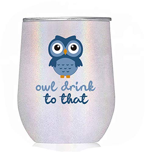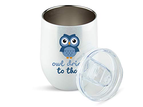 Owl Gifts for Women- 12oz Wine Tumbler or Coffee Mug – Gift Idea for Owl Lover, Decor DOUBLE WALL VACUUM INSULATION: Keeps beverage at the perfect temperature (hot or cold) for a long time. Can be used for anything from wine or juice to coffee or tea. 18/8 STAINLESS STEEL & BPA FREE: Made from 18/8 food grade stainless steel, this tumbler is unbreakable, rust resistant, doesn’t transfer flavor. Comes with a clear BPA-free lid SPILL RESISTANT & PORTABLE: Clear, push on lid makes this cute novelty tumbler ideal for everyday use, indoor and outdoor events, parties, camping, tailgating, weekends by the lake or evenings at home 12 OZ capacity is the perfect size to hold your favorite beverage and fit in your hand.