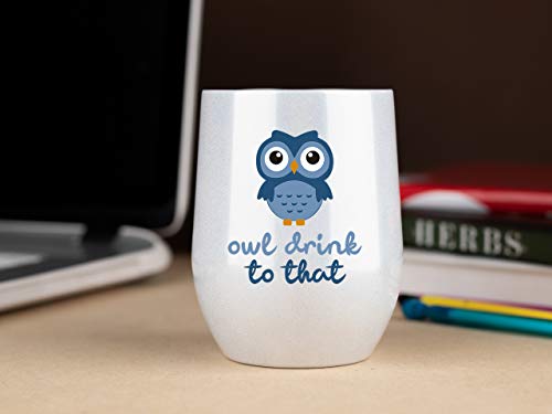 Owl Gifts for Women- 12oz GLITTER WHITE Wine Tumbler or Coffee Mug – Gift Idea for Owl Lover, Decor