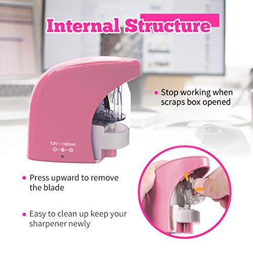 Pencil Sharpener, Electric Pencil Sharpener with Auto Safe Feature,Portable Electric Sharpener for Home/School/Classroom/Office,USB or 2AA Batteries Operated (Pink)