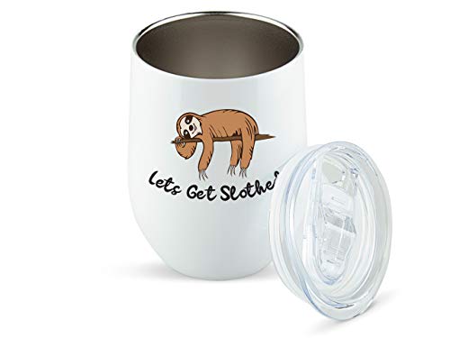 Sloth Gifts for Women – Lets Get Slothed 12oz Wine or Coffee Tumbler/Mug – Idea for Sloth Lovers, Stuff, Cup, Glass, Sloths Stuff