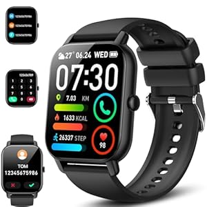 Bluetooth 5.3 Smart Watch with Make/ Answer Call and Intelligent Notification : The smart watches for men adopts bluetooth 5.3 version for a faster and more stable connection between your fitness watch and smartphone. With the built-in microphone and Hi-Fi speaker, stay cnnected seamlessly with using smart watch to make/answer Bluetooth calls, keeping you in touch with family or friends anytime, anywhere. Get all your messages and notifications (Facebook, Twitter, WhatsApp, Instagram, Messenger, Linkedin,Skype etc.) sent straight to your android smart watch with intuitive customizable vibrations.