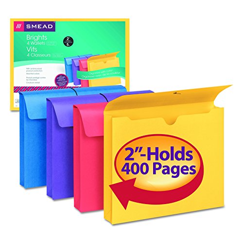 Use these colorful wallets to organize and store your most important documents. Antimicrobial material resists the growth of bacteria, mold and mildew that can cause stains, odors and product deterioration. Expand to 2″ to hold up to 200 sheets of letter-size paper. Elastic cord keeps protective flap closed and contents secure. 11 point colored stock is acid-free and archival-quality.