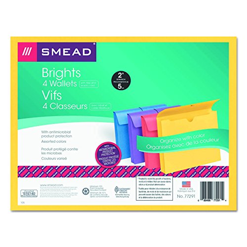 Includes 4 letter size (11-3/4″ W x 9-1/2″ H) expanding file wallets with antimicrobial product protection. Color assortment includes 1 each of blue, purple, red and yellow.