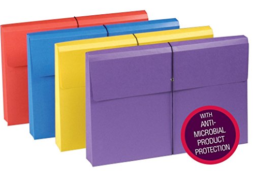 Includes 4 legal size (15″ W x 10″ H) expanding file wallets with antimicrobial product protection. Color assortment includes 1 each of blue, purple, red and yellow.
