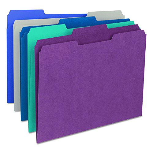 Includes 100 letter size (11-5/8″ W x 9-1/2″ H) colored folders with assorted position 1/3-cut tabs