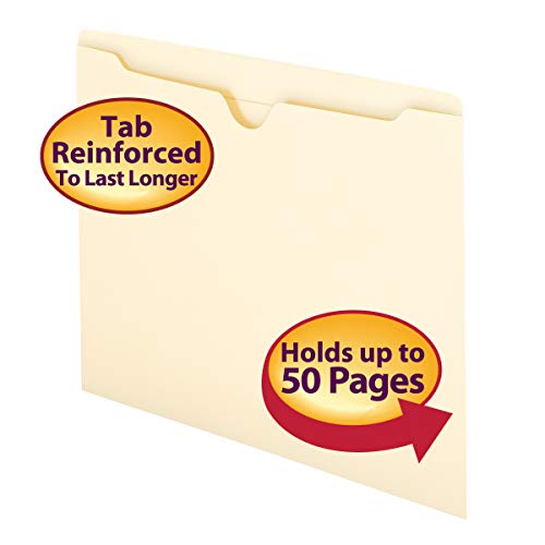 Includes 100 letter size (11-3/4″ W x 9-1/2″ H) manila file jackets (flat-no expansion) with full height sides for document security and reinforced straight-cut tabs for extra durability